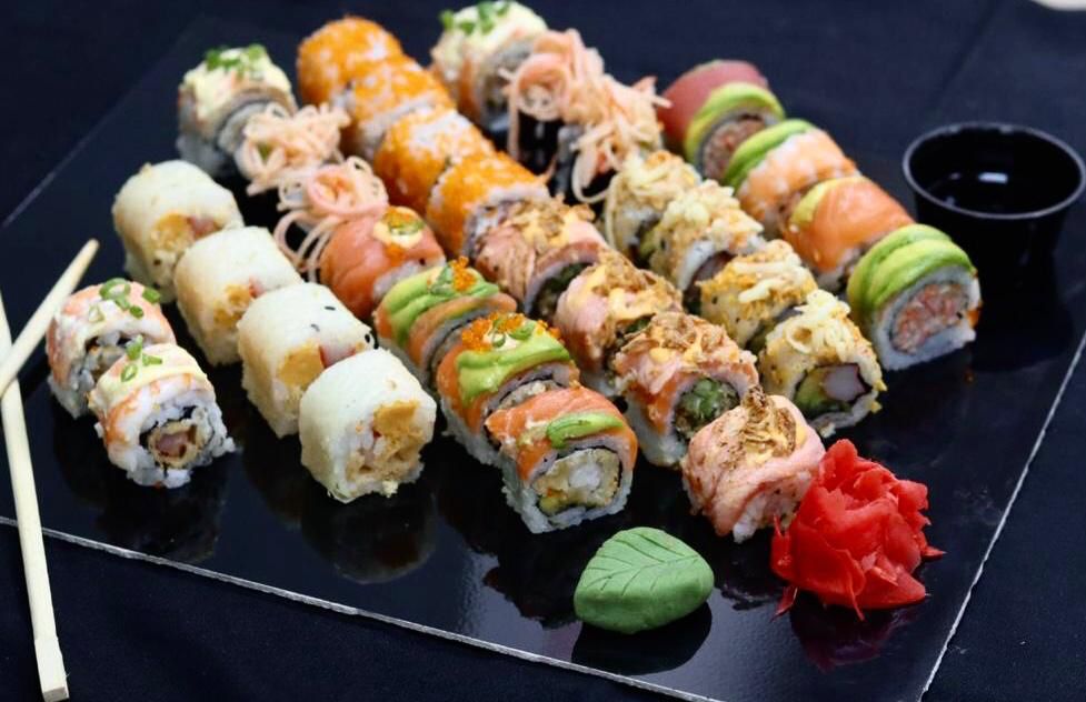 Super Shrimp – 4pcs & Salmon Philadelphia – 4pcs & Rainbow Roll – 4pcs & Mama Mia – 4pcs & Dragon Roll – 4pcs & Crispy Salmon – 4pcs & Spicy Crab mix – 4pcs & Chips A Roll – 4 pcs